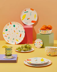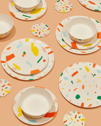 Try matching dinner plates, bowls, coasters, and drinking glasses for a perfectly paired kitchen set.