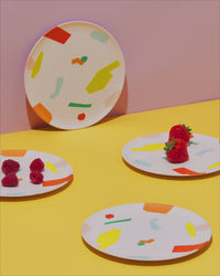 - Made from bamboo fiber, cornstarch and printed with food-grade ink